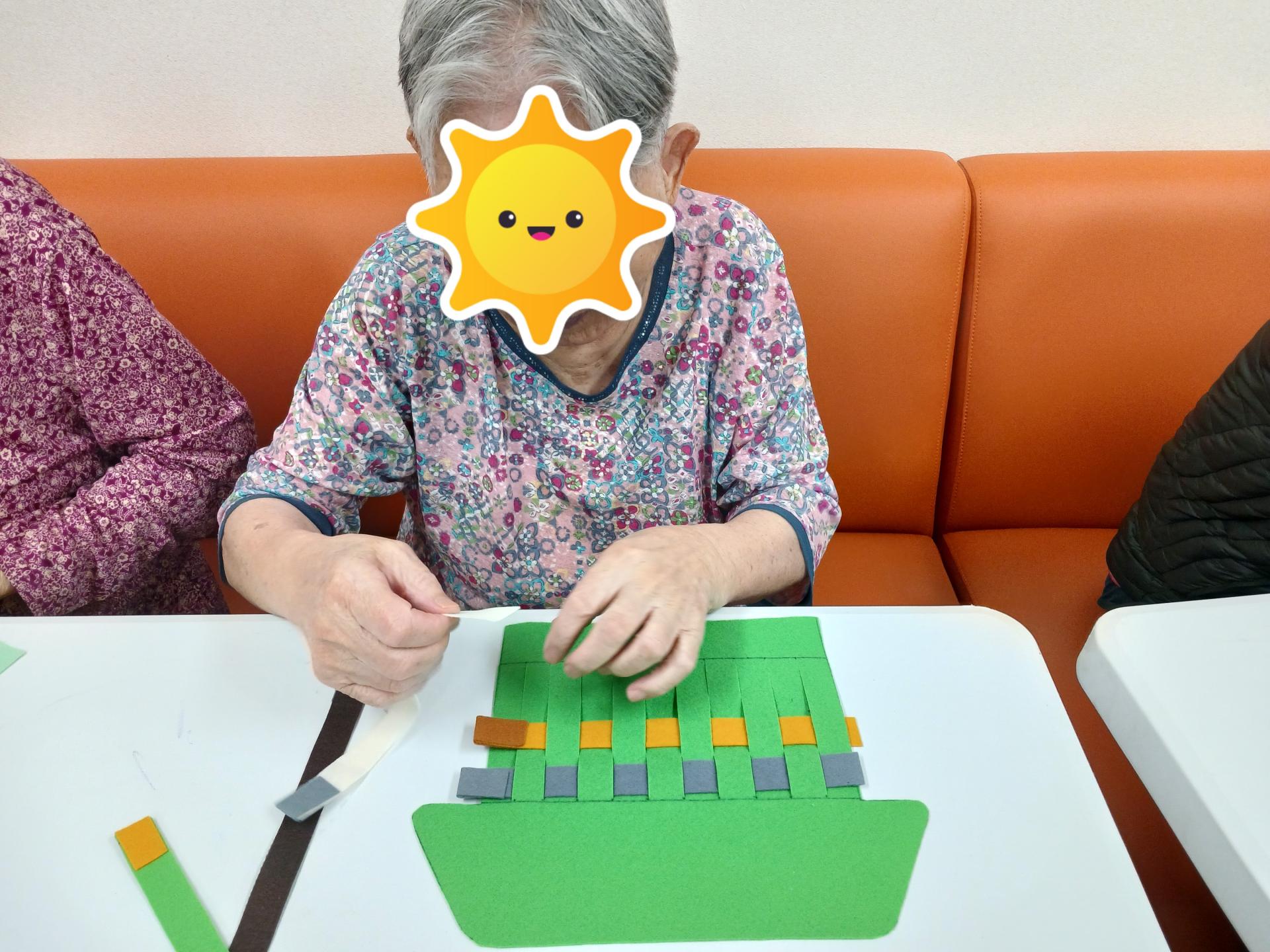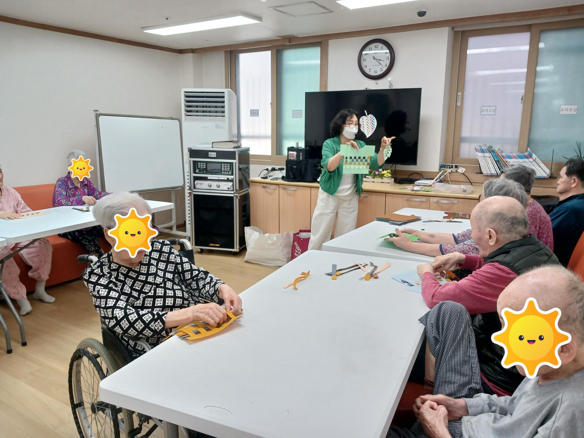 나뭇잎을 여러가지 색깔의 색지로 엮어 나뭇잎을 표현해 보고 부직포를 이용하여 더 연습해 보았습니다. 집중 하셔서 한줄 한줄 지그재그로 엮으며 집중력과 손의 움직임을 통해 인지 향상도 꾀하며 즐거운 시간이였습니다.